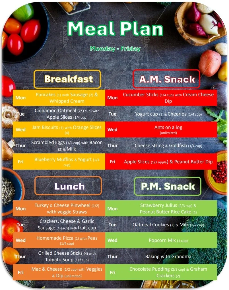 Our menu is tailored to our children's tastes to include their favorites like pasta, fresh fruit, and chicken, while slowly introducing new foods such as quinoa, leafy greens, or spring rolls. This approach helps expand their palate without overwhelming them, making healthy eating enjoyable and adventurous, while still providing essential nutrients for growth.